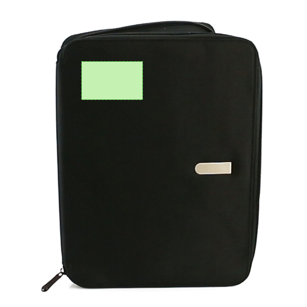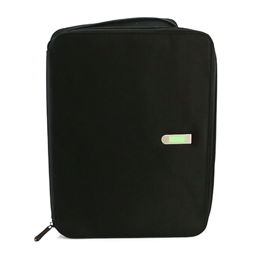 Elegante Dokumententasche mit Reißverschluss aus weicher Mikrofaser. Innenfach mit herausnehmbarem Block mit 20 linierten Blättern, Reißverschlusstasche, Pattentasche sowie Kartenfächern und Stifthalter. Mit elegantem Metall-Label auf der Front für den Laserdruck.