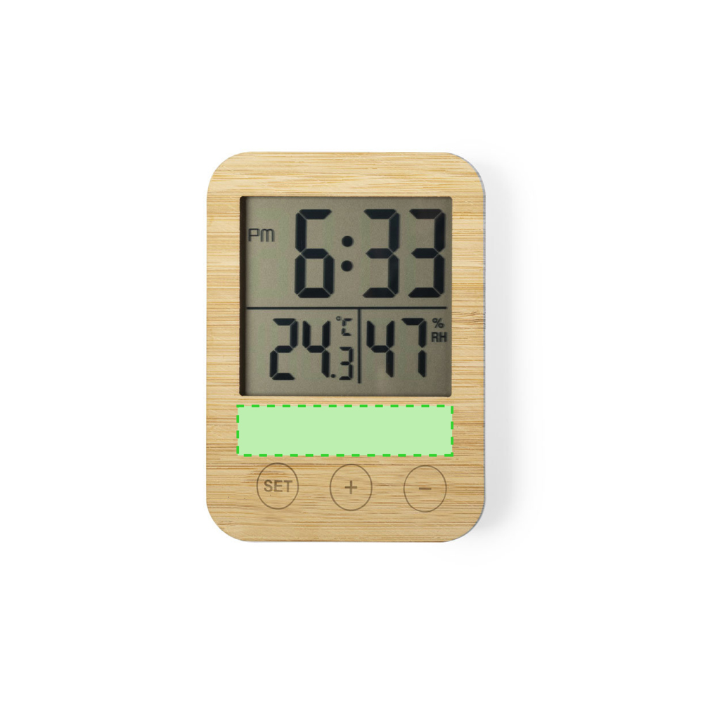 Temperaturanzeige aus der Naturlinie mit Frontplatte aus Bambus. Funktioniert als Hygrometer und Thermometer. Batteriebetrieben (2xAAA nicht enthalten), präsentiert in einer attraktiven, individuellen Öko-Design-Box.